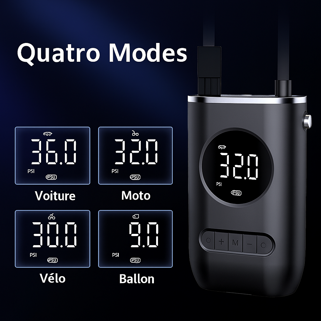 Notre compresseur portable recharge vos pneus en quelques minutes. Un indispensable pour chaque coffre.